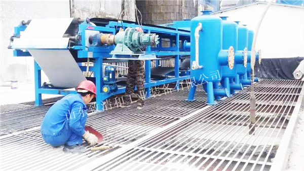带式压滤机将流态的混合液经浓缩或消化污泥,减少、脱除水分,转化为半固态或固态泥饼的过程称作污泥脱水。经过脱水后,污泥含水率一般可降低到百分之七十至百分之八十五,视污泥和沉渣的性质和脱水设备的效能而定。污泥的进一步脱水则称污泥干化,干化污泥的含水率一般低于百分之二十。脱水的方法,主要有自然干化法、带式压滤机机械脱水法。