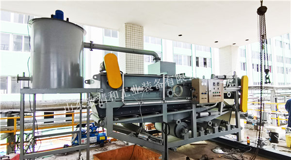 带式压滤机将流态的混合液经浓缩或消化污泥,减少、脱除水分,转化为半固态或固态泥饼的过程称作污泥脱水。经过脱水后,污泥含水率一般可降低到百分之七十至百分之八十五,视污泥和沉渣的性质和脱水设备的效能而定。污泥的进一步脱水则称污泥干化,干化污泥的含水率一般低于百分之二十。脱水的方法,主要有自然干化法、带式压滤机机械脱水法。