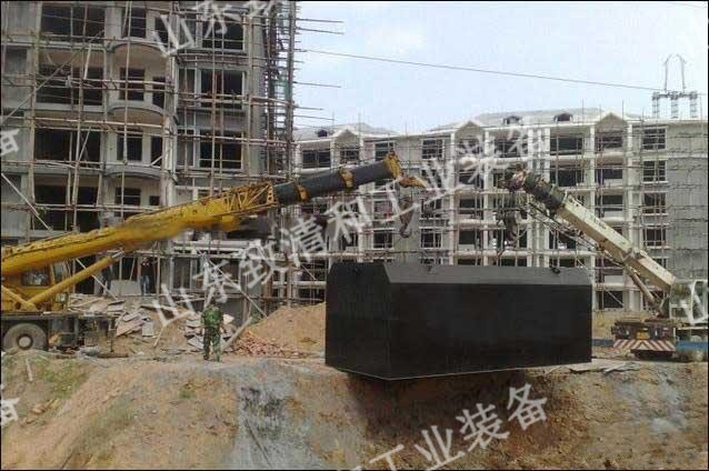 2、安装:根据安装图就位,各箱体依次就位,箱体的位置、方向不能放错,互相间距必须准确,并连接好管道。在设备内注入清水,检查各管道有无渗漏,若无则箱体四周覆土,直至设备检查孔,并平整地面。把电控箱控制线与水泵接通,电控箱与电源接通,接线时注意风机、电机的转向,必须与风机所指方向相同。